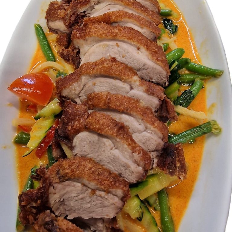 143 mit grüner Currypaste, Thai-Aubergine und Erbsenauberginen - scharf -