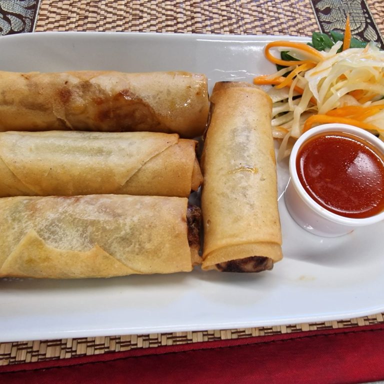 Sämtliche Mittagsmenüs werden mit einer Mini-Frühlingsrolle oder sauer-scharfen Suppe serviert